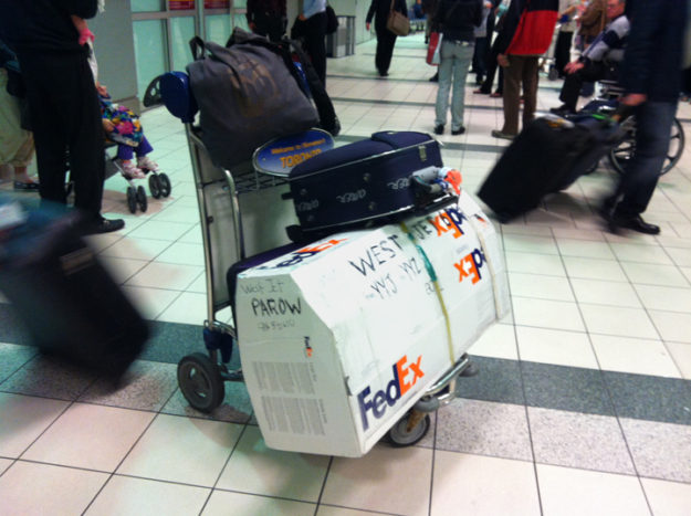 Arriving in airport with 1 month of printing in BC of Scribbleography artwork.