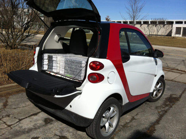Delivering smaller art show in tiny car was also quite amazing, considering everyone thinks there is no room in the little Smart Car, but there is – an entire show of artwork fit!